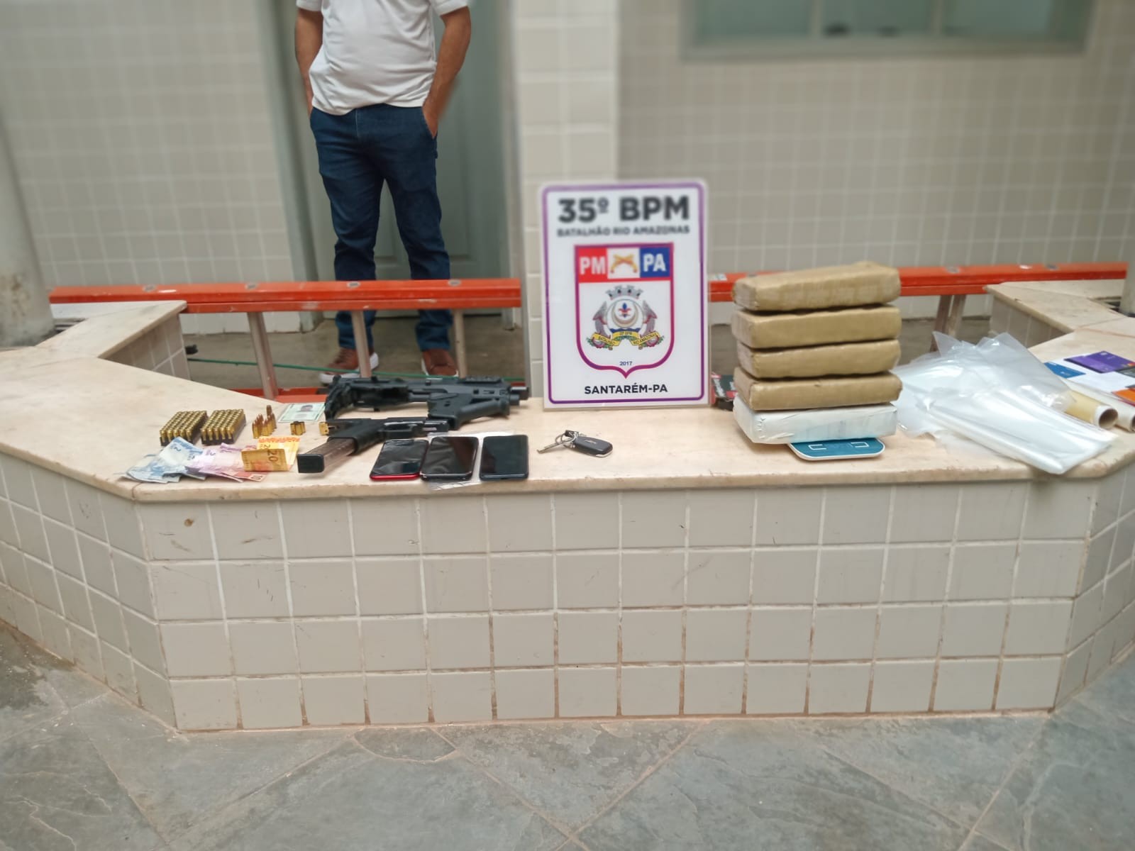 Após ser acionada por populares para atender uma ocorrência de violência doméstica no bairro Jaderlândia, em Santarém, oeste do Pará, na manhã deste sábado (11), guarnição da Polícia Militar sob o comando do 2º Tenente Aristides Monteiro, resultou na apreensão de mais de 5kg de drogas, armas, munições e na apresentação de dois homens e uma mulher na 16ª Seccional Urbana.