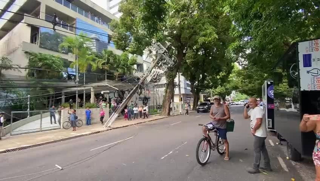 O trecho fica próximo à praça Brasil, no bairro Umarizal, e é bastante movimentado pela manhã. Ele ficou atravessado na rua, impedindo o tráfego na área. A fiação elétrica foi “levada” junto aos postes durante a queda.