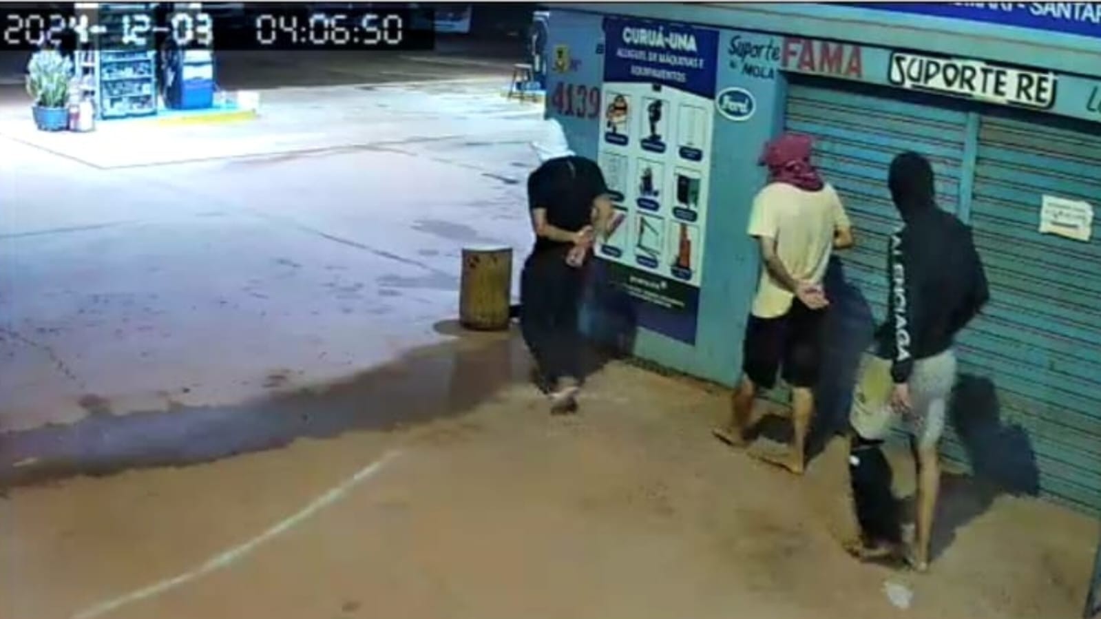 Nas imagens, é possível ver o momento em que três homens encapuzados chegam em um carro de passeio. O veículo foi estacionado a uma certa distância do posto para evitar suspeitas. Em seguida, os suspeitos caminham até o local e abordam um funcionário que estava de plantão. Armados, os assaltantes ameaçaram a vítima e conseguiram levar R$ 58, valor que estava no caixa.