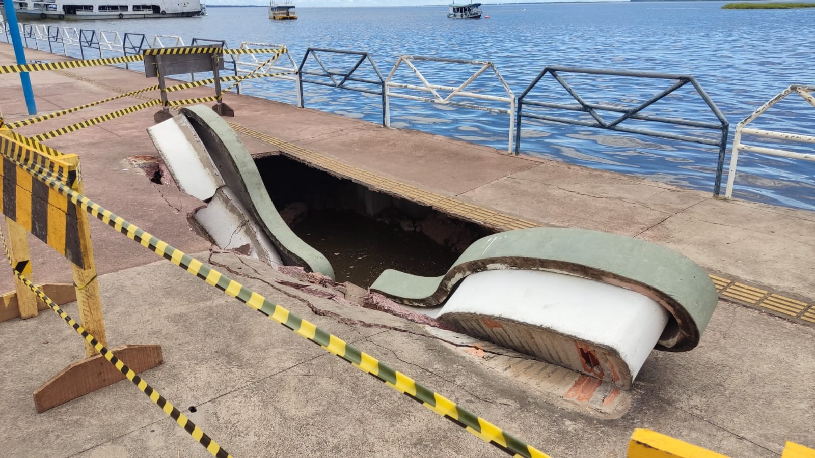 Em nota, a Prefeitura de Santarém, por meio da Secretaria Municipal de Infraestrutura (Seminfra), informou que a equipe de engenharia realizou o levantamento do dano constatado na manhã desta segunda-feira. Explicou que a estrutura, inaugurada em 2020, apresentou fuga de material devido ao surgimento de trincas. Com a pressão da água causada pela cheia do rio, houve infiltração, provocando o afundamento da calçada.