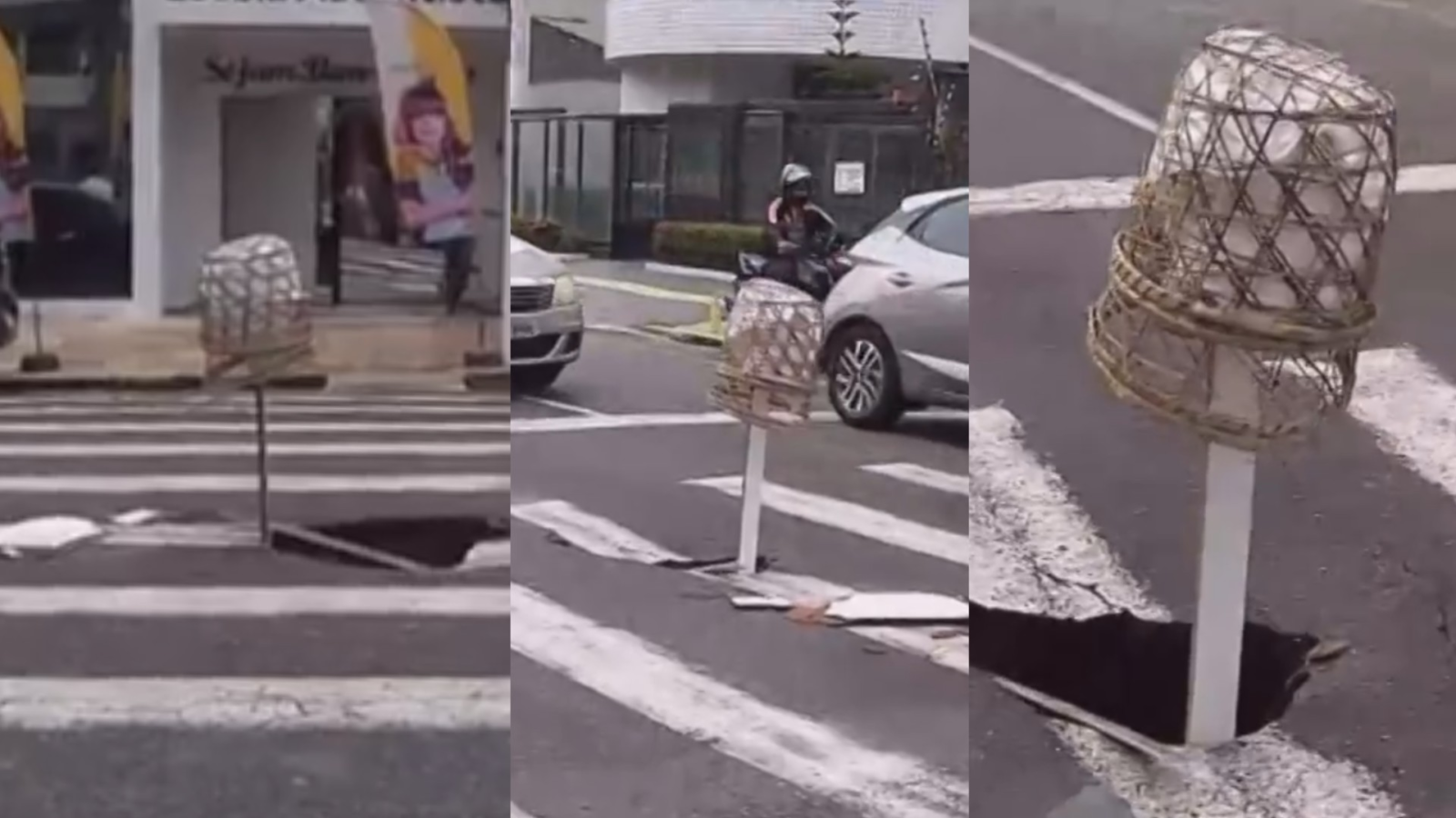Buraco no meio de faixa de pedestre na tv. Angustura atrapalha trânsito em Belém