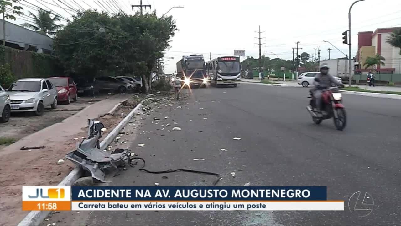 Uma carreta bateu em vários veículos e só parou quando colidiu com um poste na avenida Augusto Montenegro, em Belém, no sentido Icoaraci, nesta terça-feira (11).