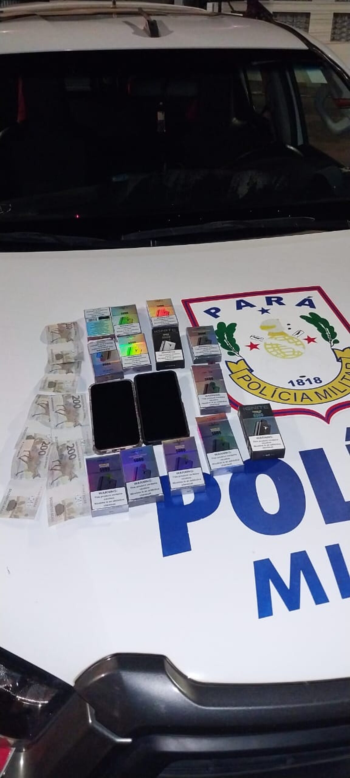 Durante a abordagem, além dos cigarros eletrônicos, os policiais encontraram a quantia de R$ 1.200,00, sendo que seis cédulas apresentavam sinais de falsificação nos elementos de segurança.