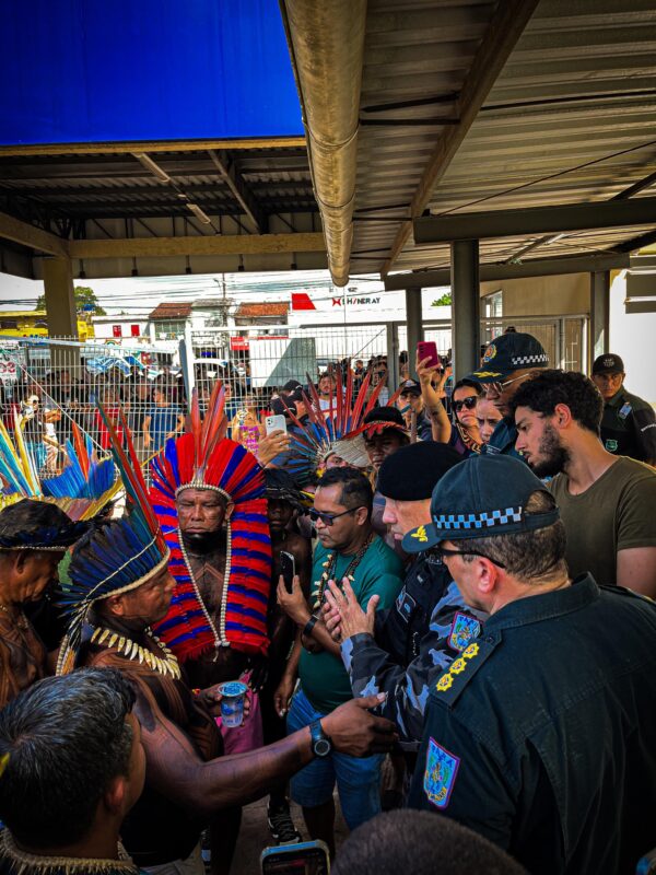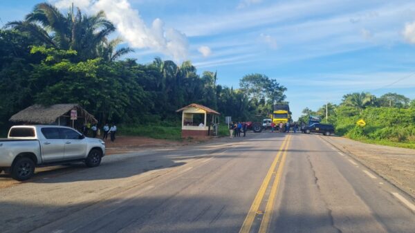 Manifestação ocorreu por volta das 13h, no quilômetro 50. Via foi liberada às 18h. Indígenas da etnia Suruí interditam BR-153, no Pará. Reprodução/Redes...