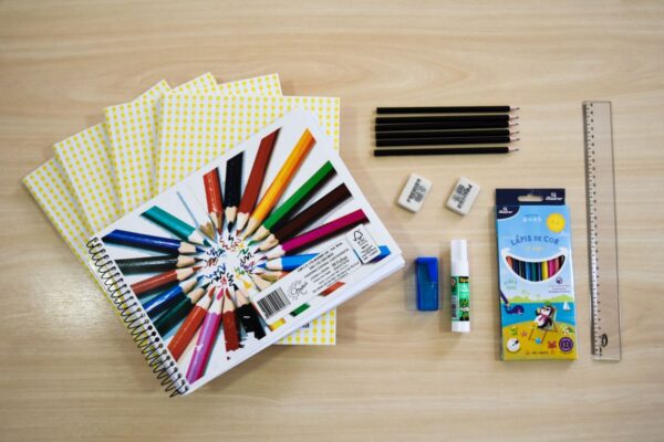 Até o dia 17 de janeiro de 2025, poderão ser doados kits que incluem itens como cadernos, giz de cera, massa de modelar,...