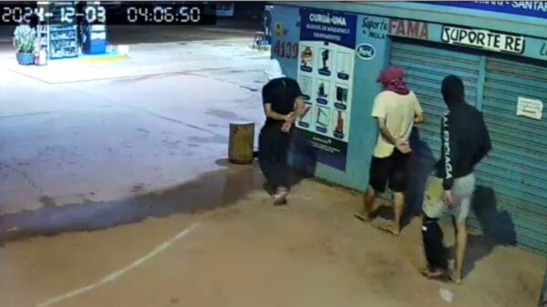 Nas imagens, é possível ver o momento em que três homens encapuzados chegam em um carro de passeio. O veículo foi estacionado a...