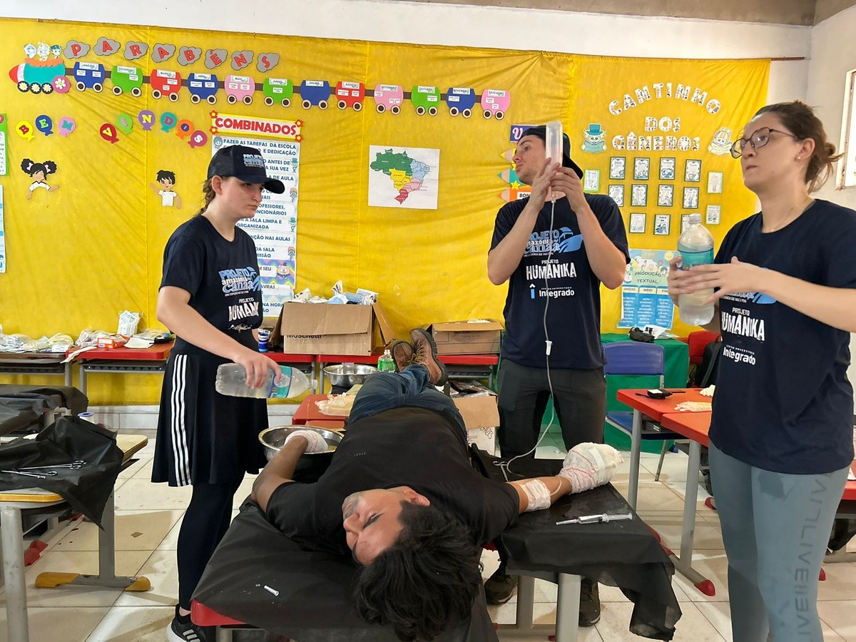 “Nós estávamos já finalizando os atendimentos após um dia exaustivo de trabalho, quando recebemos uma pessoa queimada, com uma explosão de material nas mãos e destruição bastante importantes. Queimaduras de 2º e 3º graus nas mãos, e nós pudemos fazer um atendimento de emergência em uma sala de aula. Os alunos de medicina ajudaram no atendimento, e fizemos o melhor possível até a transferência dele para o hospital. É uma notícia ruim, mas por outro, nós estávamos no lugar certo, na hora certa”, disse o médico Eufânio Saqueti, coordenador do Projeto Humanika.