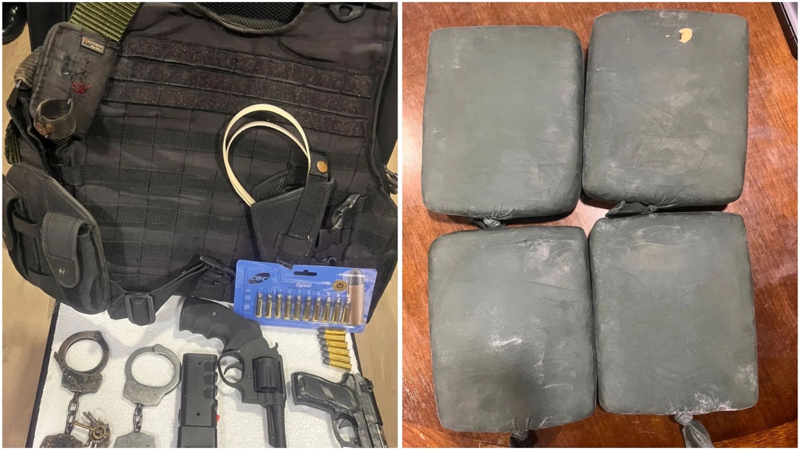 Também foram apreendidas uma arma de eletrochoque tipo Taser com capa em nylon; e um cinto com dois porta carregadores e porta algemas. Uma pessoa responsável e o material apreendido foram direcionados à Polícia Civil para os devidos procedimentos legais.