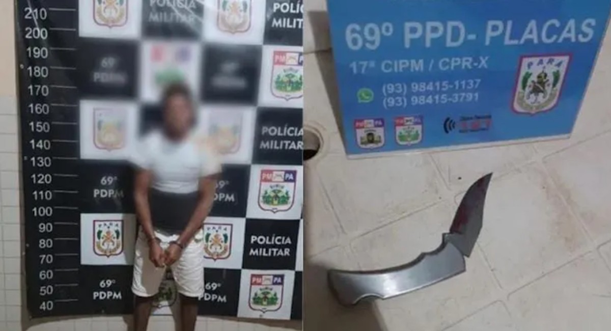 A vítima identificada como Júlio Cesar Batista da Silva, 18 anos, foi ferido com arma branca no abdômen e no rosto. Rogério Dutra Silva e a arma do crime foram apresentados na delegacia de Placas
