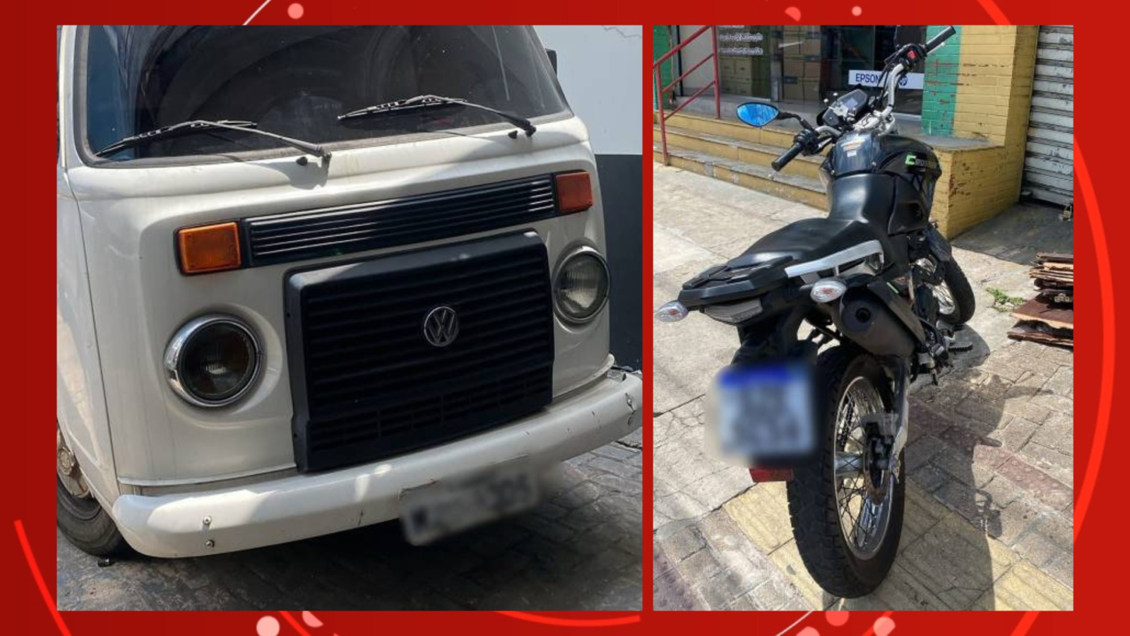 Policiais identificaram que os suspeitos estavam com uma motocicleta e uma kombi, e a equipe de agentes iniciou as buscas com intuito de identificar e localizar os investigados, que foram encontrados em Marituba. Veículos encontrados com os suspeitos.