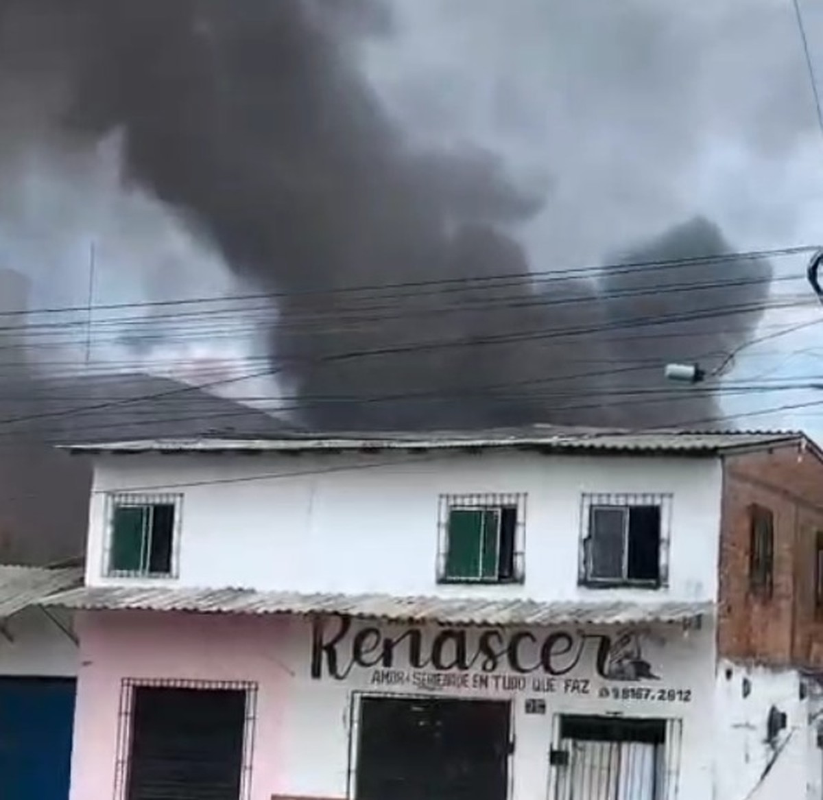 A fumaça densa e alta assustou moradores que tinham casas e lojas próximas ao local do incêndio. Parte dos móveis da casa que pegou fogo foram retirados às pressas e colocados na rua.