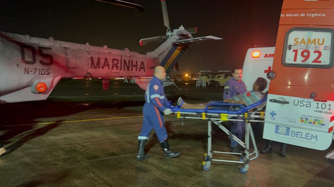 A aeronave da Marinha, do 1° Esquadrão de Helicópteros de Emprego Geral do Norte, modelo UH-15 Super Cougar, configurada para realizar “evacuação aeromédica”, foi acionada para o resgate do pescador, levando a bordo 10 militares, sendo dois pilotos, três mecânicos de voo, uma equipe de três mergulhadores, um médico e uma enfermeira.
