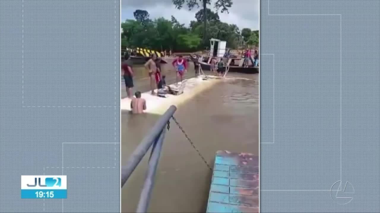 Ônibus cai de balsa dentro do rio Moju, no Pará