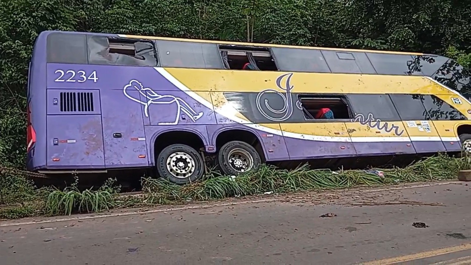 Lar Pará Ônibus tomba na rodovia BR-153, em São Geraldo do Araguaia, no Pará