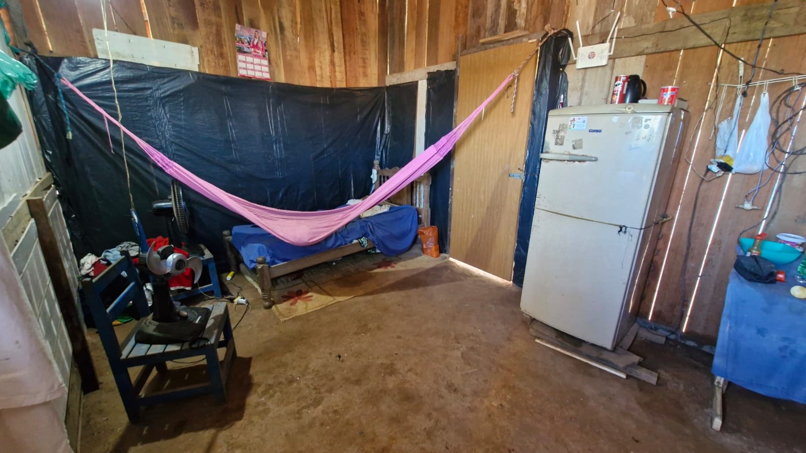 Barraco improvisado onde a família morava