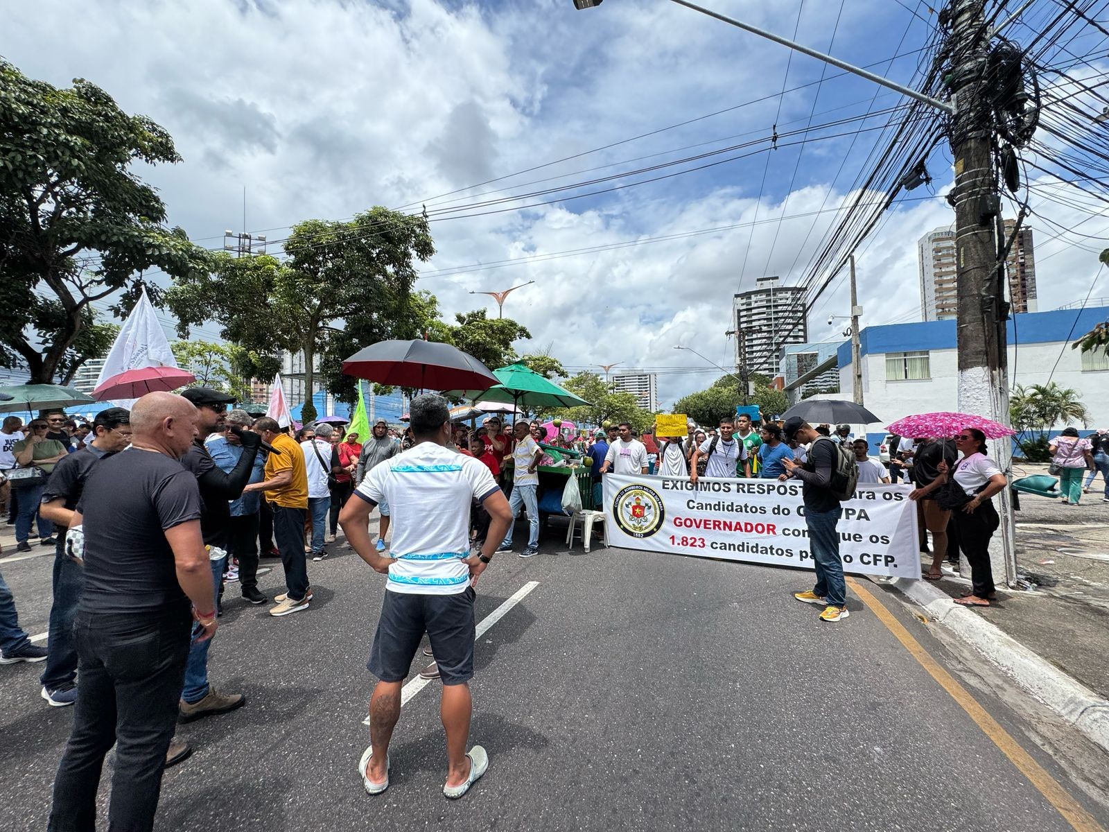 O protesto começou por volta das 9h, em frente à sede do Palácio dos Despachos, na av. Dr. Freitas, e depois, por volta das 10h, seguiu para a sede da Secretaria de Administração e Planejamento (Seplad), na av. Almirante Barroso – a via é o principal acesso ao centro de Belém e saída da capital.