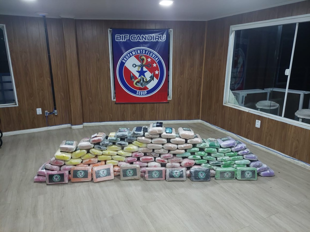 Flavio Junio Lima Soares viajava com um comparsa em uma lancha voadeira que transportava o material entorpecente. Droga apreendida na lancha na qual viajam Flavio Junio e um comparsa que fugou pulando nas águas do Rio Amazonas