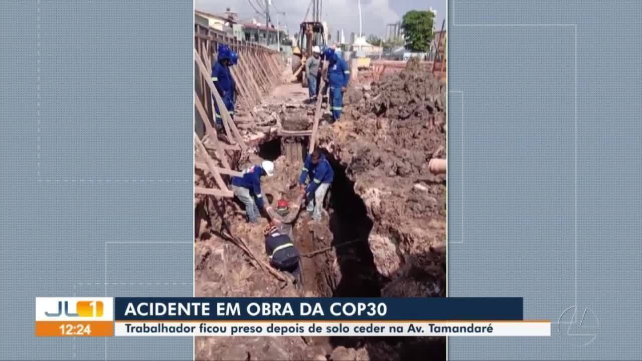 Homem fica preso no solo em obra da COP 30 feita em Belém