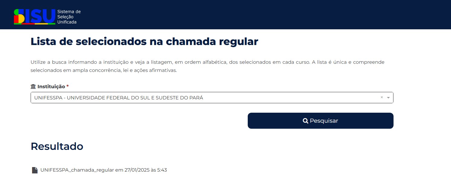 👉 É possível baixar aqui a lista de aprovados na Unifesspa. A lista completa de aprovados e de espera, que deveria aparecer na primeira página, está sendo divulgada em planilhas.