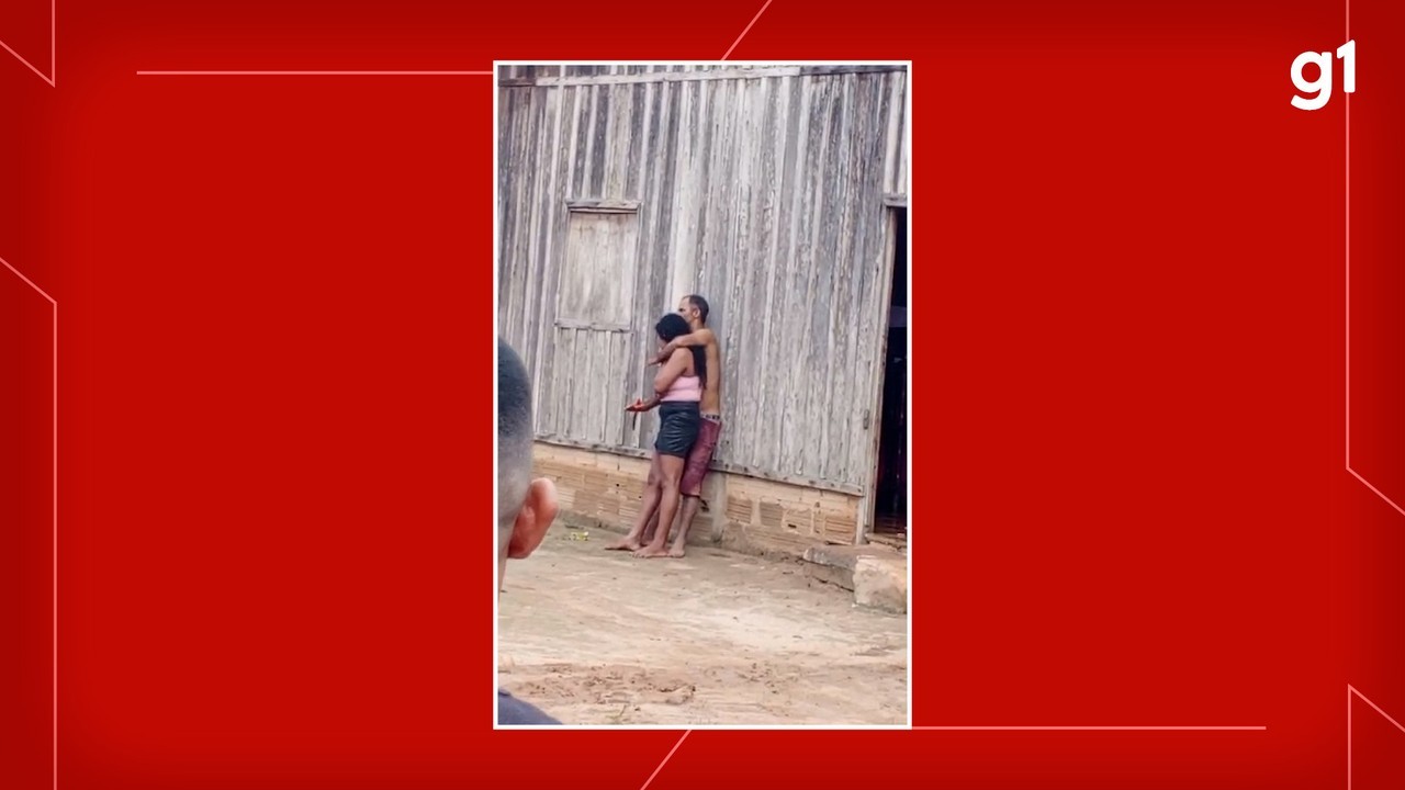 A comunidade fica localizada no KM 92 da BR-163 e moradores registraram o momento que o homem, que parecia estar transtornado, segurava a mulher que seria sua companheira.