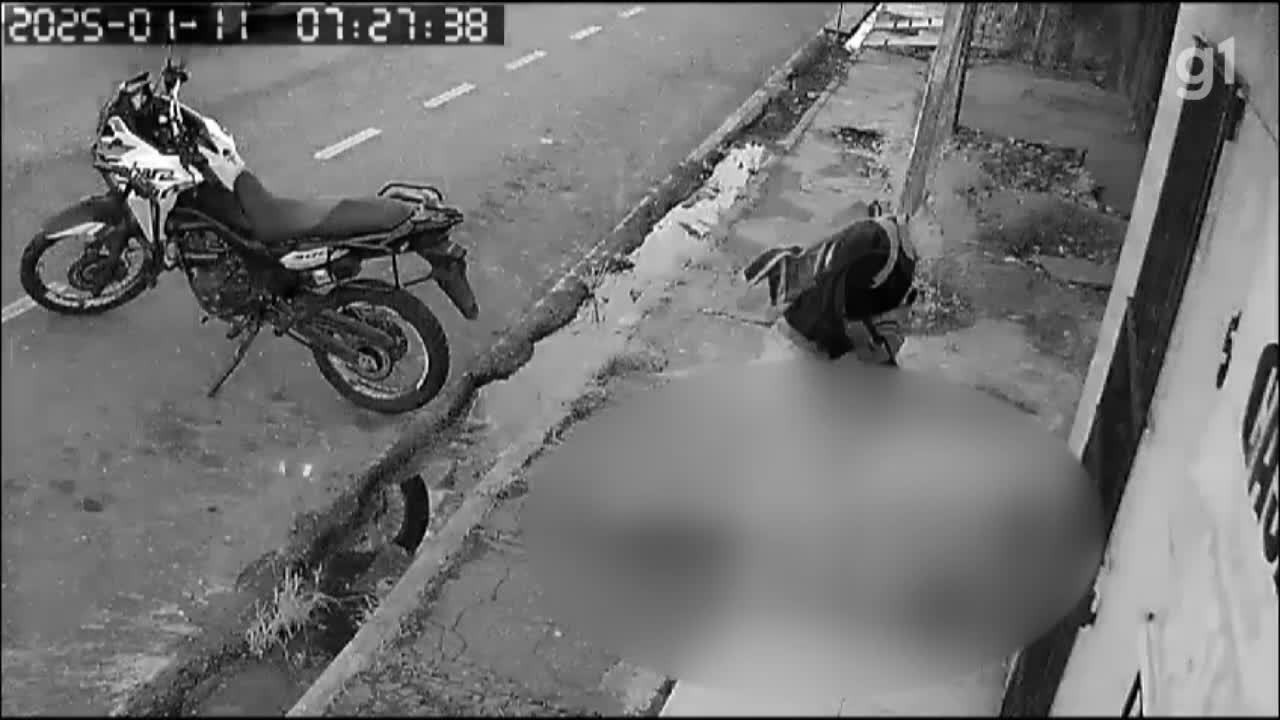 Imagens de uma câmera de monitoramento mostram toda a ação criminosa. A vítima estava em frente a uma casa, com uma mochila e um capacete. O vigilante foi em direção a uma moto que aparece parada na rua, quando é surpreendido com o ataque a tiros de um outro homem.